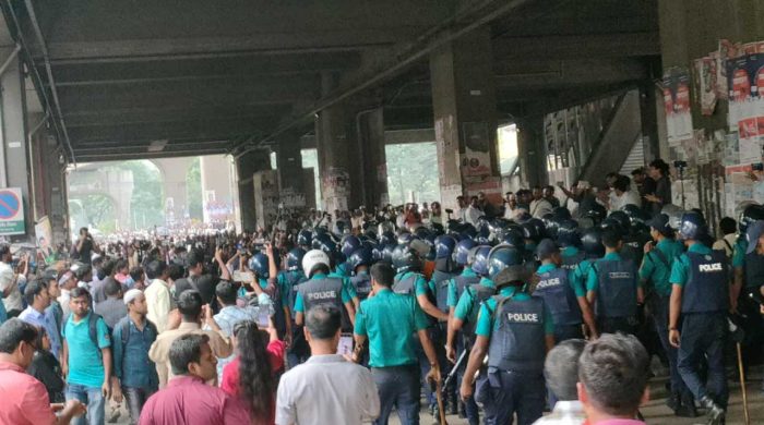অন্যদিকে প্রেস ক্লাব এলাকা থেকে শিক্ষক নেতাদের সরাতে পুলিশ সাউন্ড গ্রেনেড নিক্ষেপ করে। এতে শিক্ষকরা আতঙ্কিত হয়ে পড়েন। অনেকেই আবার প্রতিরোধ গড়ে তোলার চেষ্টাও করেন। তবে এখন পর্যন্ত বড় ধরনের কোন সংঘর্ষের খবর পাওয়া যায়নি।