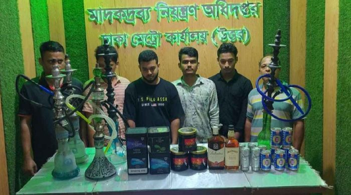 এ সময় ৩ কেজি সিসা, ৫টি হুক্কা, ২ লিটার বিদেশি মদ, ১২টি বিয়ার ক্যান এবং মাদক বিক্রির ১২ হাজার ৮৭০ টাকা উদ্ধার করা হয়। ডিএনসি আরও জানায়, গ্রেফতারকৃত আসামিরা প্রাথমিক জিজ্ঞাসাবাদে জানান, আবু সাইদ ও ইবনুল হাসান মনটানা সিসা লাউঞ্জের মালিক। নিজেদের দখলীয় অবৈধ সিসা বারে আগত অতিথিদের মাঝে আসামিরা পারস্পরিক সহযোগিতায় নিকোটিনযুক্ত সিসা, বিদেশি মদ ও বিয়ার বিক্রি ও সরবরাহ করতেন।